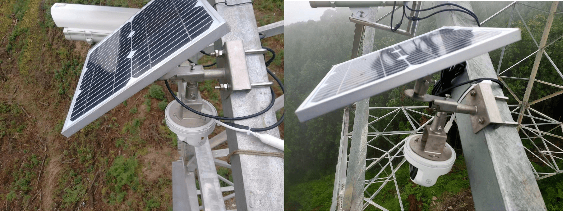 輸電線路微云臺圖像監(jiān)拍裝置采用低功耗設計,由太陽能與蓄電池供電,工作時主要通過微型云臺攝像機對輸配電線路的運行狀況及周圍環(huán)境進行實時監(jiān)控,并利用AI識別對外力破壞因素進行抓拍及告警,同時將外力破壞等數(shù)據(jù)經過數(shù)字化壓縮編碼后,使用4G傳輸加密上傳監(jiān)控中心,監(jiān)控人員可通過客戶端及手機APP訪問平臺,實時了解前端外破情況,及時做出應急措施,為電力系統(tǒng)的穩(wěn)定運行提供了強有力的支持。
