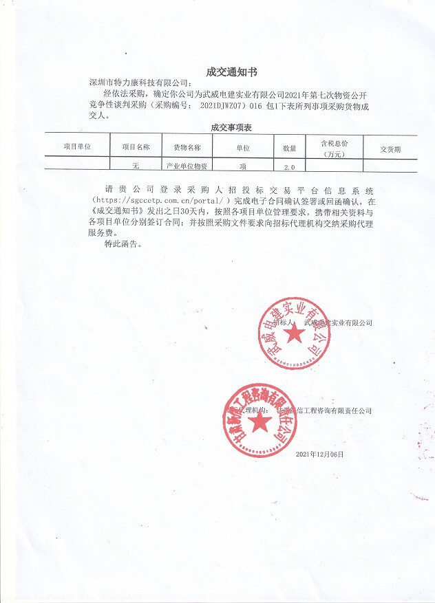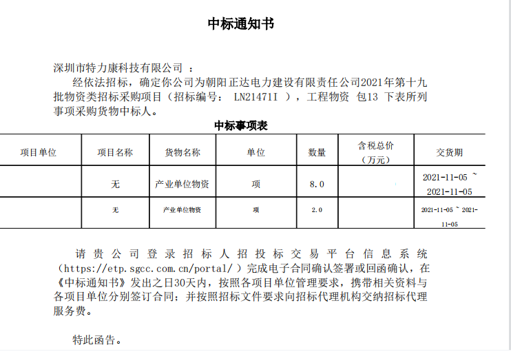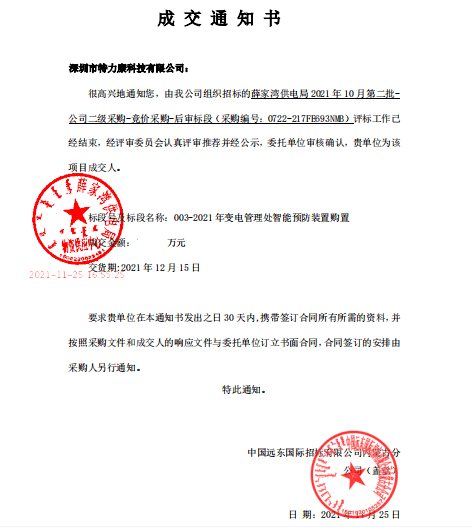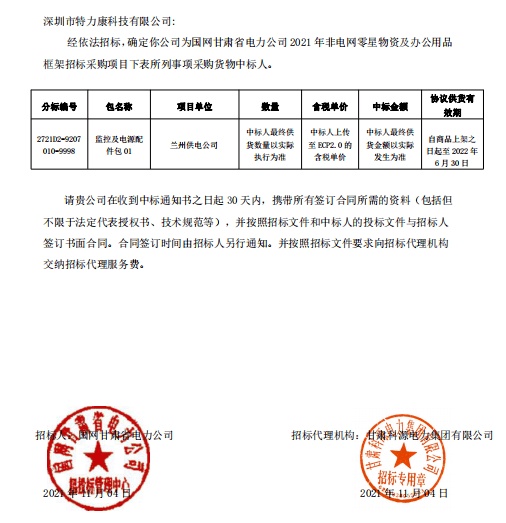 特力康中標國網黑龍江送變電工程公司的2024年度第18次物資類競爭性談判采購項目——慶陽驅鳥器物資框 特力康中標國網甘肅省電力公司省管產業單位2024年第五次物資競爭性談判授權采購項目 中標喜訊:深圳市特力康科技有限公司成功入圍許繼集團綜合能源公司輸電線路視頻在線監測裝置模塊集采項目 中標喜訊:特力康成功中標國網重慶市電力公司渝中一片區項目 特力康成功中標國網天津市電力公司2024年第二次?物?資招標項目 特力康中標國網安徽省電力有限公司蕪湖供電公司2024年3月非物質采購項目 山東電網 “穩塔哨兵”:特力康智能桿塔傾斜監測預警裝置筑牢電力桿塔安全防線 特力康科技輸電線路高清圖像監控裝置,為河南輸電通道筑牢安全屏障 黃土高原護塔穩:特力康傾斜監測裝置為山西電網筑牢根基 黔山冰防線:特力康 “數據 + 圖像” 雙監測守護貴州輸電線路 戈壁林區的 “火情哨兵”:特力康紅外熱成像裝置守護甘肅輸電線路 內蒙電網裝上 “舞動監測眼”:特力康輸電線路防舞動監測系統守護線路安全 浙江電力裝上“氣象哨兵”:特力康裝置守護電網應對臺風暴雨 蜀道巡線不用“爬”:特力康視頻在線監測裝置守護四川輸電鐵塔 風雪中的 “防冰哨兵”:內蒙古電力用特力康監測系統筑牢覆冰防線 雙軸感知護塔穩:山西電力用特力康裝置破解采空區傾斜難題 寧夏配電線路安裝了我司防外破電子化智能警示牌
