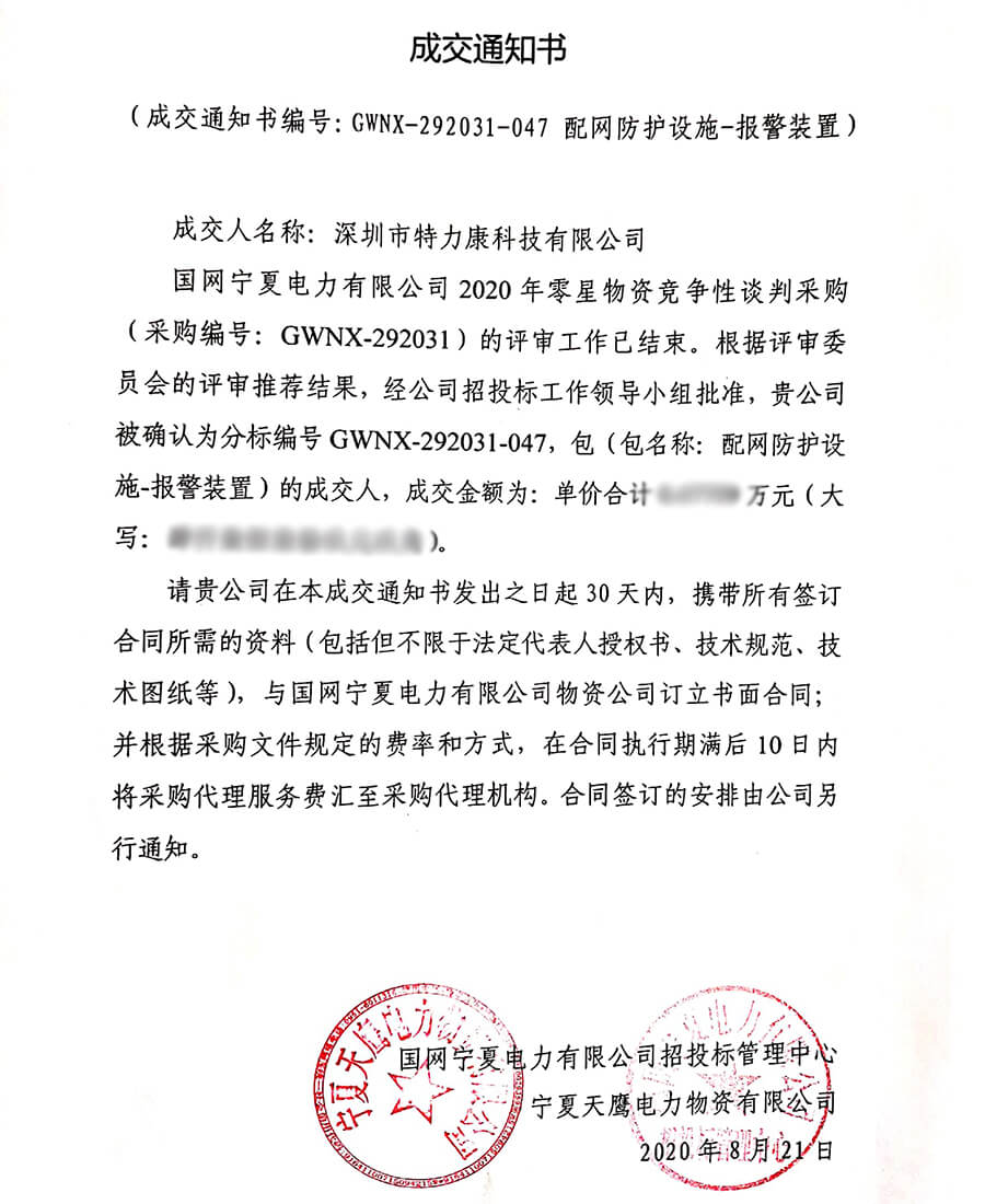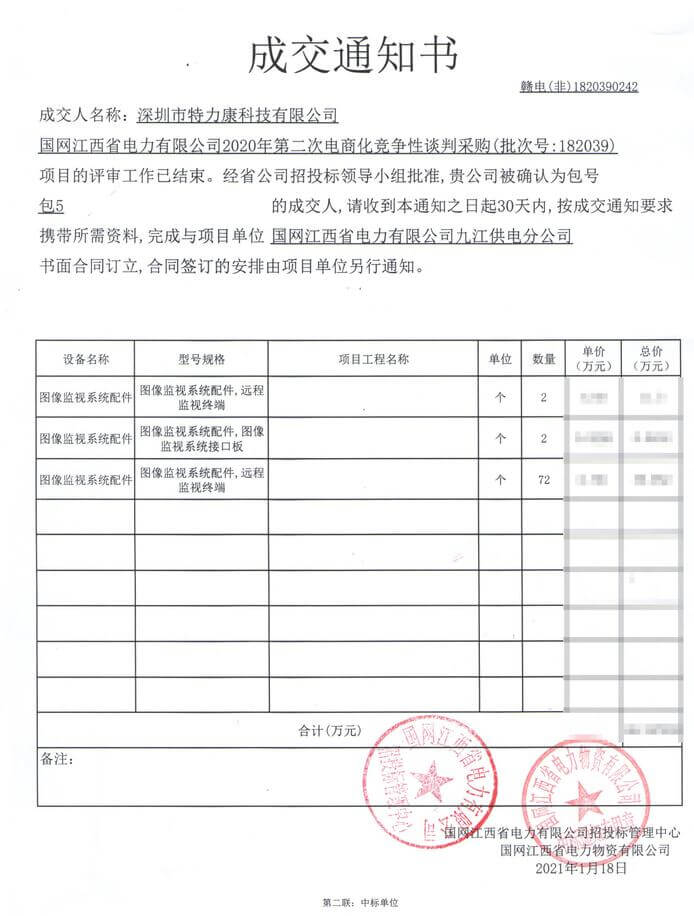 特力康中標(biāo)國網(wǎng)黑龍江送變電工程公司的2024年度第18次物資類競爭性談判采購項(xiàng)目——慶陽驅(qū)鳥器物資框 特力康中標(biāo)國網(wǎng)甘肅省電力公司省管產(chǎn)業(yè)單位2024年第五次物資競爭性談判授權(quán)采購項(xiàng)目 中標(biāo)喜訊:深圳市特力康科技有限公司成功入圍許繼集團(tuán)綜合能源公司輸電線路視頻在線監(jiān)測裝置模塊集采項(xiàng)目 中標(biāo)喜訊:特力康成功中標(biāo)國網(wǎng)重慶市電力公司渝中一片區(qū)項(xiàng)目 特力康成功中標(biāo)國網(wǎng)天津市電力公司2024年第二次?物?資招標(biāo)項(xiàng)目 特力康中標(biāo)國網(wǎng)安徽省電力有限公司蕪湖供電公司2024年3月非物質(zhì)采購項(xiàng)目 山東電網(wǎng) “穩(wěn)塔哨兵”:特力康智能桿塔傾斜監(jiān)測預(yù)警裝置筑牢電力桿塔安全防線 特力康科技輸電線路高清圖像監(jiān)控裝置,為河南輸電通道筑牢安全屏障 黃土高原護(hù)塔穩(wěn):特力康傾斜監(jiān)測裝置為山西電網(wǎng)筑牢根基 黔山冰防線:特力康 “數(shù)據(jù) + 圖像” 雙監(jiān)測守護(hù)貴州輸電線路 戈壁林區(qū)的 “火情哨兵”:特力康紅外熱成像裝置守護(hù)甘肅輸電線路 內(nèi)蒙電網(wǎng)裝上 “舞動(dòng)監(jiān)測眼”:特力康輸電線路防舞動(dòng)監(jiān)測系統(tǒng)守護(hù)線路安全 浙江電力裝上“氣象哨兵”:特力康裝置守護(hù)電網(wǎng)應(yīng)對(duì)臺(tái)風(fēng)暴雨 蜀道巡線不用“爬”:特力康視頻在線監(jiān)測裝置守護(hù)四川輸電鐵塔 風(fēng)雪中的 “防冰哨兵”:內(nèi)蒙古電力用特力康監(jiān)測系統(tǒng)筑牢覆冰防線 雙軸感知護(hù)塔穩(wěn):山西電力用特力康裝置破解采空區(qū)傾斜難題 寧夏配電線路安裝了我司防外破電子化智能警示牌