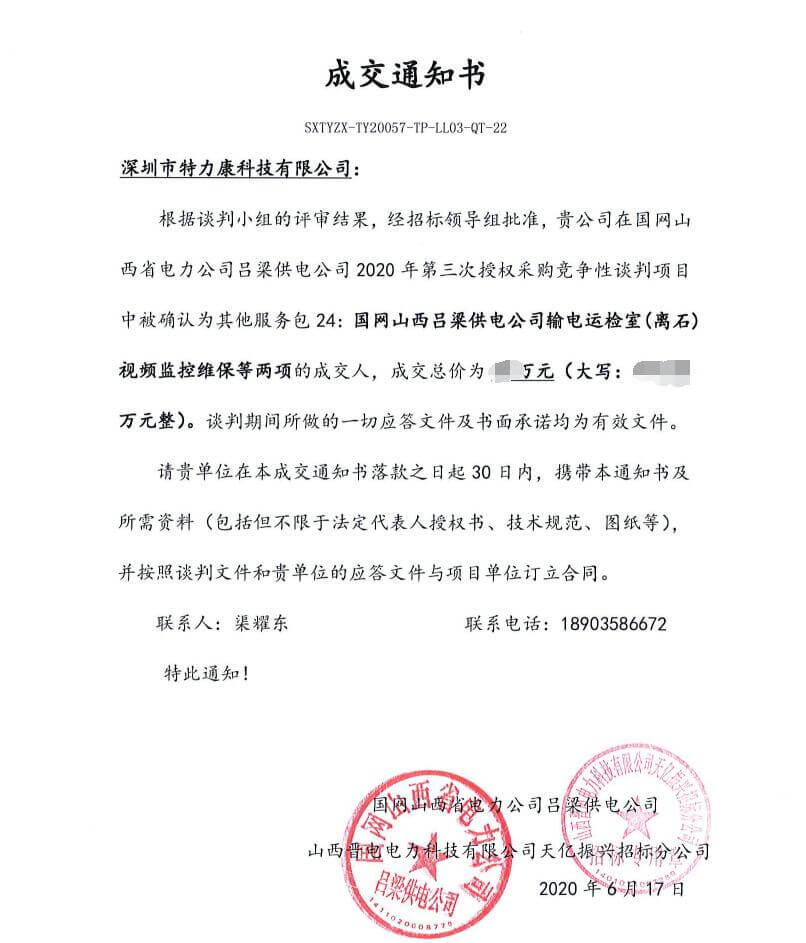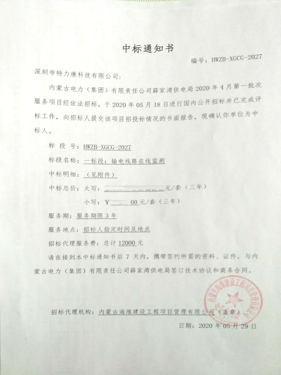 特力康中標國網(wǎng)黑龍江送變電工程公司的2024年度第18次物資類競爭性談判采購項目——慶陽驅(qū)鳥器物資框 特力康中標國網(wǎng)甘肅省電力公司省管產(chǎn)業(yè)單位2024年第五次物資競爭性談判授權采購項目 中標喜訊:深圳市特力康科技有限公司成功入圍許繼集團綜合能源公司輸電線路視頻在線監(jiān)測裝置模塊集采項目 中標喜訊:特力康成功中標國網(wǎng)重慶市電力公司渝中一片區(qū)項目 特力康成功中標國網(wǎng)天津市電力公司2024年第二次?物?資招標項目 特力康中標國網(wǎng)安徽省電力有限公司蕪湖供電公司2024年3月非物質(zhì)采購項目 山東電網(wǎng) “穩(wěn)塔哨兵”:特力康智能桿塔傾斜監(jiān)測預警裝置筑牢電力桿塔安全防線 特力康科技輸電線路高清圖像監(jiān)控裝置,為河南輸電通道筑牢安全屏障 黃土高原護塔穩(wěn):特力康傾斜監(jiān)測裝置為山西電網(wǎng)筑牢根基 黔山冰防線:特力康 “數(shù)據(jù) + 圖像” 雙監(jiān)測守護貴州輸電線路 戈壁林區(qū)的 “火情哨兵”:特力康紅外熱成像裝置守護甘肅輸電線路 內(nèi)蒙電網(wǎng)裝上 “舞動監(jiān)測眼”:特力康輸電線路防舞動監(jiān)測系統(tǒng)守護線路安全 浙江電力裝上“氣象哨兵”:特力康裝置守護電網(wǎng)應對臺風暴雨 蜀道巡線不用“爬”:特力康視頻在線監(jiān)測裝置守護四川輸電鐵塔 風雪中的 “防冰哨兵”:內(nèi)蒙古電力用特力康監(jiān)測系統(tǒng)筑牢覆冰防線 雙軸感知護塔穩(wěn):山西電力用特力康裝置破解采空區(qū)傾斜難題 寧夏配電線路安裝了我司防外破電子化智能警示牌