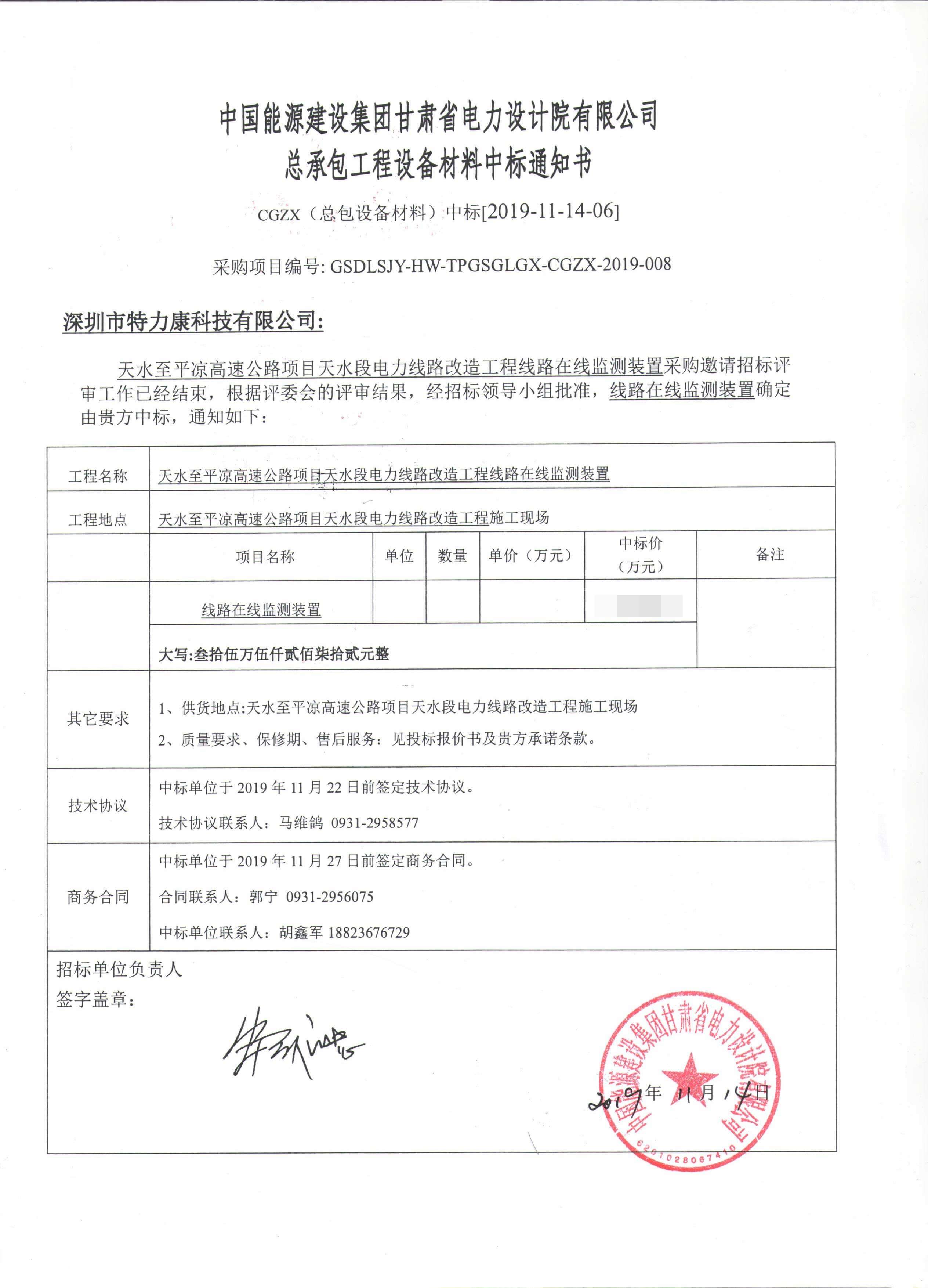 特力康中標國網黑龍江送變電工程公司的2024年度第18次物資類競爭性談判采購項目——慶陽驅鳥器物資框 特力康中標國網甘肅省電力公司省管產業單位2024年第五次物資競爭性談判授權采購項目 中標喜訊:深圳市特力康科技有限公司成功入圍許繼集團綜合能源公司輸電線路視頻在線監測裝置模塊集采項目 中標喜訊:特力康成功中標國網重慶市電力公司渝中一片區項目 特力康成功中標國網天津市電力公司2024年第二次?物?資招標項目 特力康中標國網安徽省電力有限公司蕪湖供電公司2024年3月非物質采購項目 山東電網 “穩塔哨兵”:特力康智能桿塔傾斜監測預警裝置筑牢電力桿塔安全防線 特力康科技輸電線路高清圖像監控裝置,為河南輸電通道筑牢安全屏障 黃土高原護塔穩:特力康傾斜監測裝置為山西電網筑牢根基 黔山冰防線:特力康 “數據 + 圖像” 雙監測守護貴州輸電線路 戈壁林區的 “火情哨兵”:特力康紅外熱成像裝置守護甘肅輸電線路 內蒙電網裝上 “舞動監測眼”:特力康輸電線路防舞動監測系統守護線路安全 浙江電力裝上“氣象哨兵”:特力康裝置守護電網應對臺風暴雨 蜀道巡線不用“爬”:特力康視頻在線監測裝置守護四川輸電鐵塔 風雪中的 “防冰哨兵”:內蒙古電力用特力康監測系統筑牢覆冰防線 雙軸感知護塔穩:山西電力用特力康裝置破解采空區傾斜難題 寧夏配電線路安裝了我司防外破電子化智能警示牌